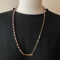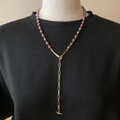 【着け方5通り!アレンジして楽しむアクセサリー、ツヤあり渋め紫色パールのマンテルネックレス】