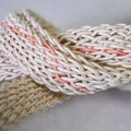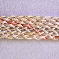 淡いサーモンピンクと生成り色のレース組紐の帯締めをリメイクしました。