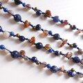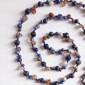 使用パーツ:ソーダライト ラピスラズリ ボツワナアゲート コッパールチルクォーツ スモーキークォーツ メタルビーズ(アンティークゴールド色) ドイツ製シルクコード(ダークブルー)