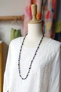 ネイビーのソーダライトやラピスラズリをメインにしたダークブルー系のロングネックレスです。