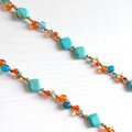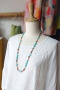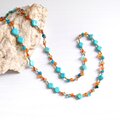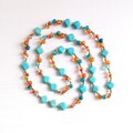 太陽と海の調和 - ターコイズブルーとオレンジのエンドレスロングネックレス Y-2050