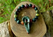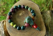 寛大さと優しさ、包容力を育み、大きな愛で他人と接することができるように助けてくれます。愛する人達に惜しみない愛を与え、与えた愛がより深い愛になって返ってくる効果があります。女性の為のお守り石と言われ、「授かる」というエネルギー的特性から、妊娠や安産の為のお守り石として用いられました。生命の誕生と深い関係がある石です。また、愛を貫く勇気と信念を与え、心に秘めた男性の愛を獲得するとも伝えられています。男性にとっては、気力を充実させ成功を呼ぶ石として人気です。濃い緑色と血の色のコントラストは、肉体を鍛え、オーラを強化するヒーリング効果をもたらすそうです。又、血液の流れがスムーズになることで闘争心や野心を高めるのでスポーツの気力増進にも役立つでしょう。