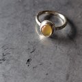 ふんわりと煌めく遊色、やさしいオレンジ色のファイアオパールをラフな飾り枠を施しシルバーリングに仕立てました。