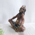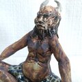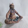 瞳や衣装、角などの一部分には薄く透明釉を施しているので、その部分は少し光沢があります。