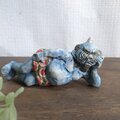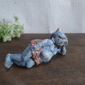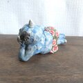 瞳や衣装、角などの一部分には薄く透明釉を施しているので、その部分は少し光沢があります。