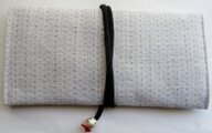 8251 麻の白絣の着物で作った和風財布・ポーチ#送料無料