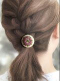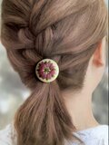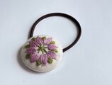 紫色かかったピンク色のボタニカルなデザインヘアゴムです。