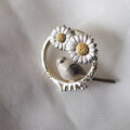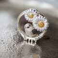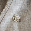 丸い目と小さなくちばし、長い尻尾が愛らしいシマエナガをモチーフにしたピンブローチ。