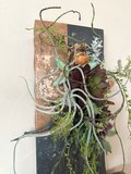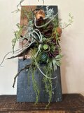 まるで本物と見紛うようなアーティフィシャルグリーンは、多肉植物やエアプランツ、シダなどを重ねて立体感とリアリティを追求。