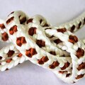 生成り色に茶色のドット模様の帯締めをリメイクしました。