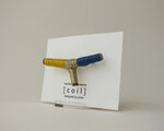この作品は黄色、ゴールド、紺の糸を少し太めの枝に巻きつけ存在感のある1点に仕上げました。