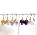 ごろっと存在感のある、天然の水晶タンブルをたっぷりとあしらったボリュームピアスです。