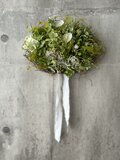 サイズ約16×24㎝なるべく壁にシンプルにあるといいなと思い、グリーンばかりでシンプルに仕上げました。形も個性ある形を目指しました。長くお楽しみ頂けるプリザーブドフラワーで仕上げました。時間経過によりいずれはゆっくりと退色していきますが、飾る場所によって色もちは異なります。なるべく光や日差しが当たらない涼しい屋内の場所ですと、いい状態を保ちやすいです。お花が過ごしやすい場所に飾ってあげるのもいいのですが、お客様が1番飾りたい場所で飾っていただくのもいいかもしれません。