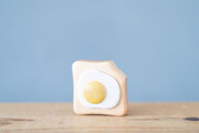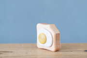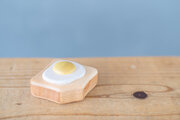 ひとくちかじった形がキュートな[エッグトーストのラトル]