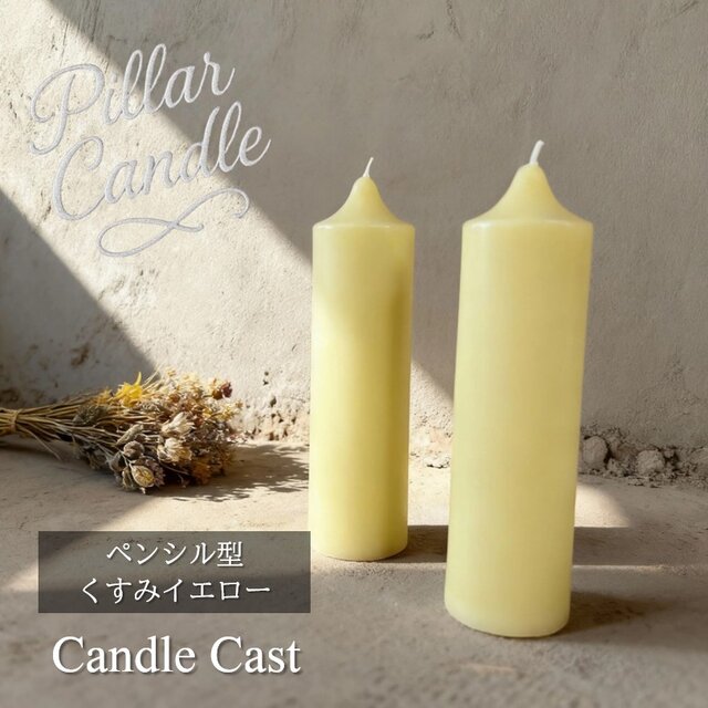 【ピラーキャンドル】ペンシル型キャンドル:くすみイエロー:2本セット