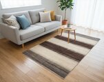 伝統的なギャッベのデザインを現代的に解釈し、ストライプやジグザグ、