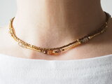 チェコガラスビーズに希少なヴィンテージオーストリア製・高品質クリスタルガラス(スワロ)や淡水パールなど、さまざまな色と形の希少ビーズを組み合わせたショートタイプのネックレス2本セットです。