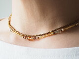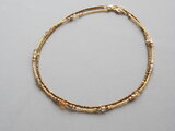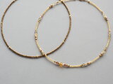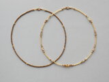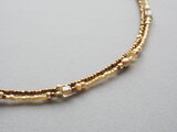 粒ビーズは、ベージュゴールド系の極短い竹ビーズと、ブロンズ系のスリーカットビーズは希少な広島ビーズで、繊細なカットが動く度にきらめきます。
