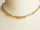 ベージュブロンズ チェコガラスビーズとヴィンテージビーズ、淡水パールのネックレス(2本セット)秋色 広島ビーズ