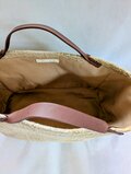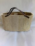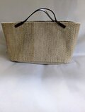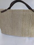ナチュラル麻糸をオ-バ-ショット織りにした生地をバッグに仕立てました。