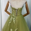 カラードレス グリーン ハンドビーディング ベアトップ 美しい花レース 大人っぽい 編み上げ 披露宴