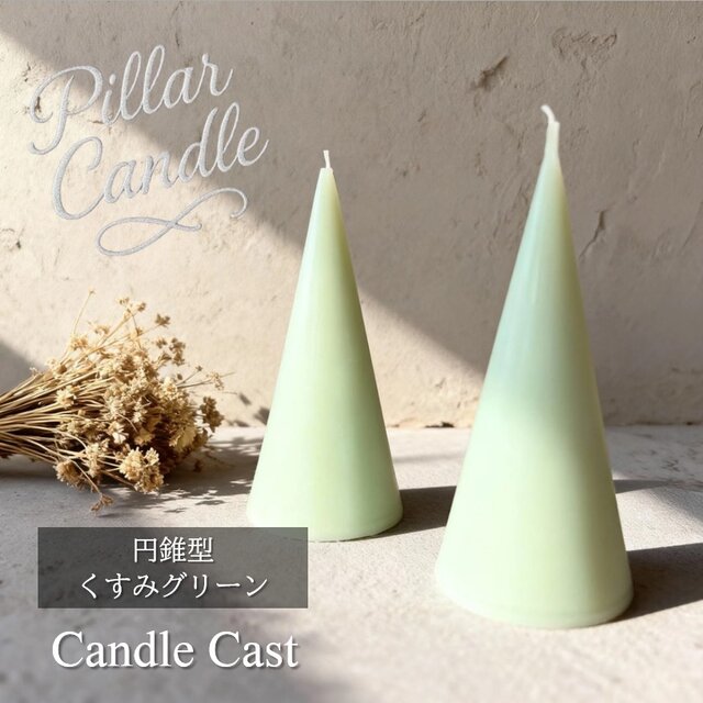 【ピラーキャンドル】円錐型キャンドル:くすみグリーン:2本セット