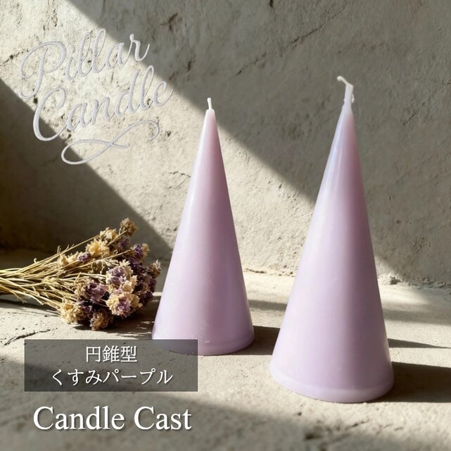 【ピラーキャンドル】円錐型キャンドル:くすみパープル:2本セット