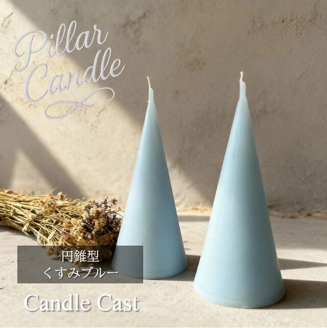 【ピラーキャンドル】円錐型キャンドル:くすみブルー:2本セット
