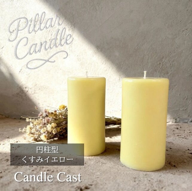 【ピラーキャンドル】円柱型キャンドル:くすみイエロー:2本セット