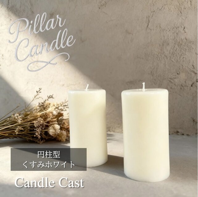 【ピラーキャンドル】円柱型キャンドル:くすみホワイト:2本セット