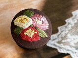 冬の花、椿を可愛くポップなイメージでアレンジしたブローチです。