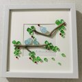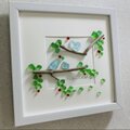 シーグラスアート 海の宝石 小鳥の家族 風景画 夏のインテリア 雑貨 観葉植物 北欧ガラス細工 贈り物 誕生日プレゼント