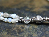 2種類のオーロラチェコビーズとグーズベリー、フランスのヴィンテージビーズ、カレンシルバーなどを繋いだ2連のブレスです。
