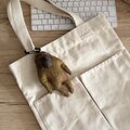 ※今回より金具を5cmのカラビナに変更しました。太い持ち手にもつけられます。