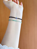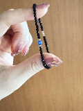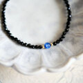 カイヤナイトとブラックスピネルのブレスレット 伸縮性タイプ