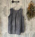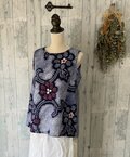 ☆ 浴衣リメイク 藍色に赤とピンクの花&無地パッチ有松絞りノースリーブタックブラウス ♪