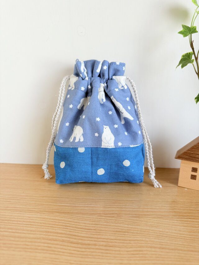保温保冷シート付き巾着袋・大きめ(おにぎり、ドリンク入れに)デコレクションズ・シロクマ