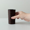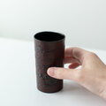 桜の樹皮で形をつくり、漆を塗ったコップです。