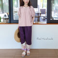 [Coordinate] グレープリネン・蝶の刺繍とフラワーの裾切替タックパンツ