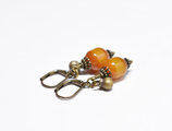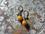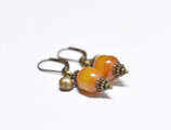 ツートン琥珀色アフリカンアンバーと民族鈴のピアス