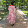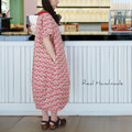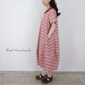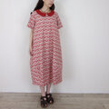 [予約販売] 北欧フラワーと赤い襟・バルーンシルエットのコットンリネンワンピース