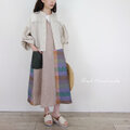 [Coordinate] かすれ霜降りリネンチェック襟Vワンピース