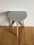今回は、ホワイトグレーのメラミン天板×天然木の脚