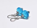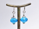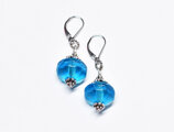 ブルー算盤型アンティークボヘミアビーズと隠しブルービーズを繋いだピアスです。