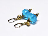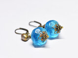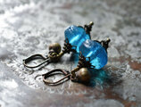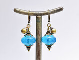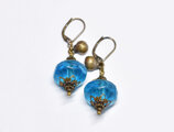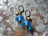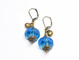 ブルー算盤型アンティークボヘミアビーズと民族鈴のピアス
