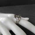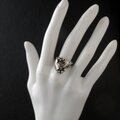 瑞々しいブルー、そしてカットがとても美しいトパーズを、優しく葉で包み込んでいるデザインです。 燻加工で葉の陰影も美しく、とても美しいリングでした。