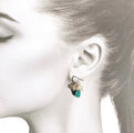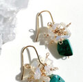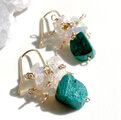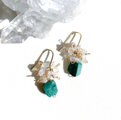 鮮やかなグリーンが目を惹く天然のクリソコラに虹色に輝く小さなプレシャスオパールを散りばめた大人の天然石ピアス。