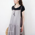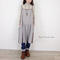 モカの縁取り・グレージュリネンのキャミワンピース