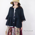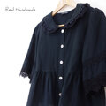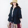 [予約販売] ブラックダブルガーゼのしっとりレース羽織りブラウス