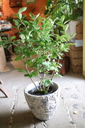 オプションでアンティーク風のテラコッタコンテナに植え替えてのお届けもできます。(¥6,180)